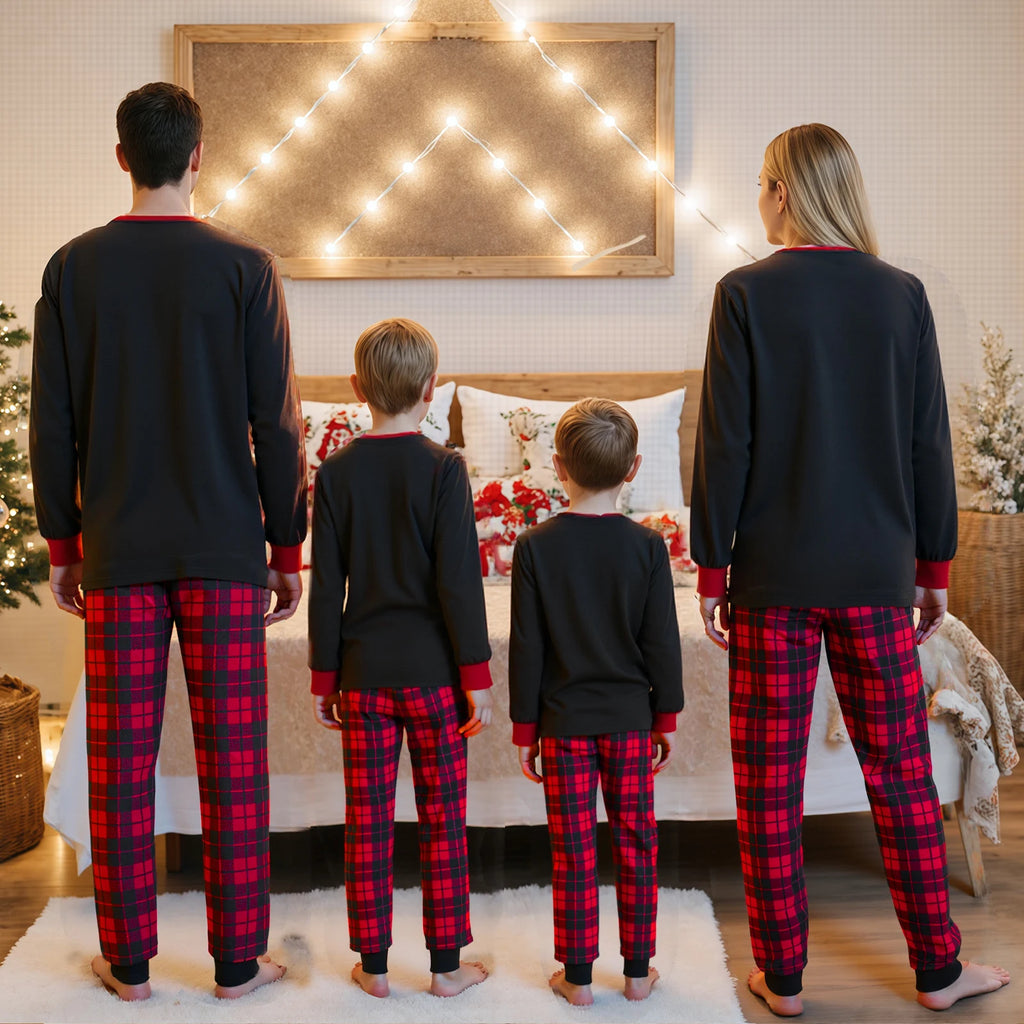 Christmas Family Pajamas Matching Set, Long Sleeve Letters Print T-shirt with Plaid Pants Sleepwear Loungewear
